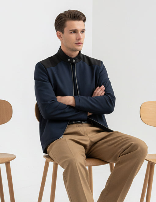 Men's Standing Collar Zipper Casual Jacket